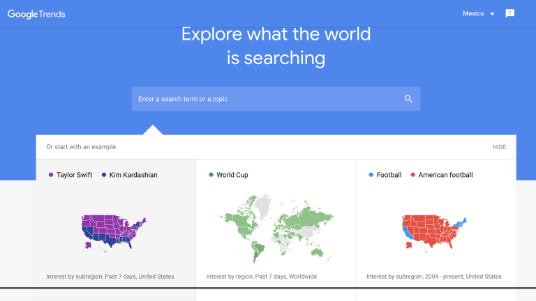 Esta herramienta de Google te permite ver tendencias, datos y visualizaciones que están siendo tendencia en el buscador. Descubre en general, los temas del momento ahora mismo, o busca uno en particular introduciéndolo en su barra de buscador.
